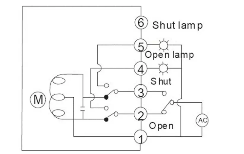 如下:開關(guān)型帶有源燈指示電動蝶閥接線圖,共有5根接線,1,2,3是控制部分,1,4,5是反饋部分。