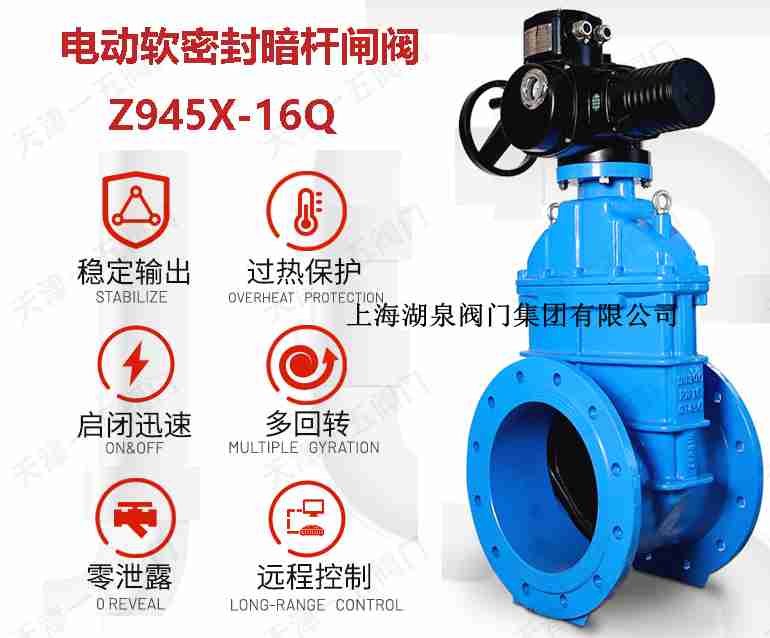 上海湖泉閥門集團(tuán)有限公司Z945X-10Q DN800 電動(dòng)軟密封閘閥生產(chǎn)廠家,咨詢: 021-64162222   湖泉閥門軟密封法蘭閘閥 z945x-10q-dn80 價(jià)格Z945X電動(dòng)軟密封閘閥概述 可根據(jù)用戶的要求配裝各種電動(dòng)執(zhí)行機(jī)構(gòu),實(shí)現(xiàn)遠(yuǎn)距離控制及自動(dòng)控制。除具有彈性座封閘閥的優(yōu)點(diǎn)之外,還具有靈敏、可靠、安裝方便等特點(diǎn)。電動(dòng)軟密封閘閥可廣泛用于自來...Z945X電動(dòng)軟密封閘閥可根據(jù)用戶的要求配裝各種電動(dòng)執(zhí)行機(jī)構(gòu),實(shí)現(xiàn)遠(yuǎn)距離控制及自動(dòng)控制.具有靈敏、可靠、安裝方便等優(yōu)點(diǎn)。可廣泛用于自來水、污水、建筑、石油、化工、食品、醫(yī)藥等行業(yè)。